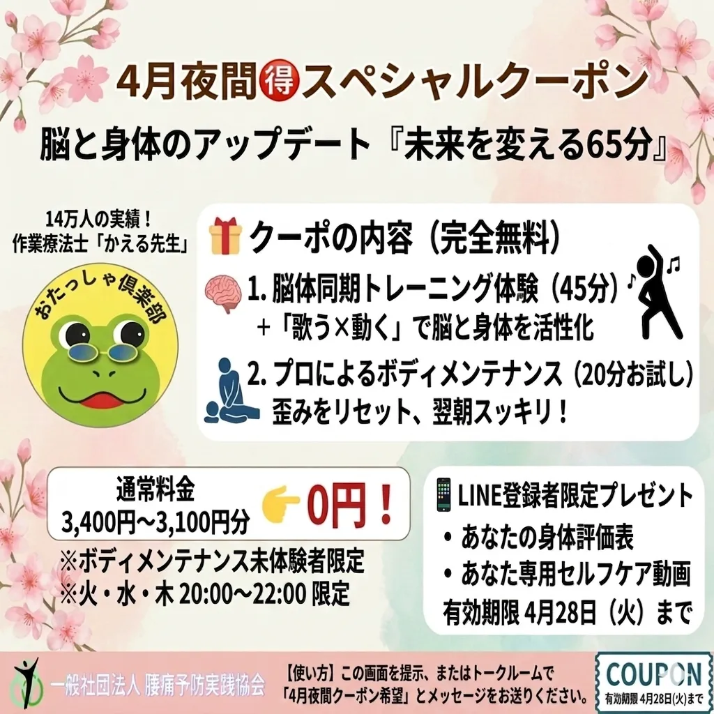 🌸 4月夜間限定!脳と身体のアップデート『🉐スペシャルクーポン』