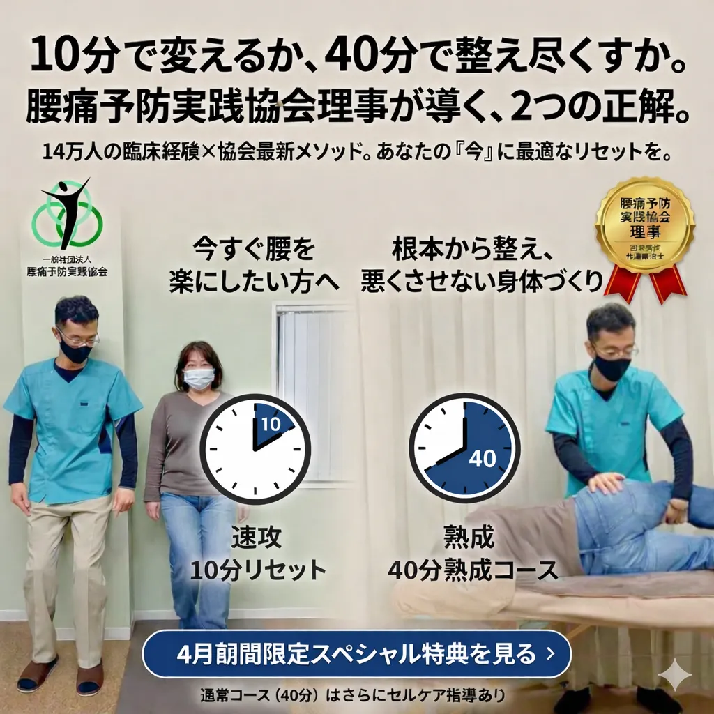 最短距離で“動ける状態”に戻す。 ポイントは、「10分で変化を感じるか」「40分で整えきるか」。